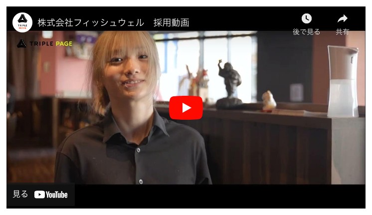 HPの右上の【採用情報】から弊社の詳しい求人情報が見れるのですが、その中の求人記事のページで今回新しく作成した採用動画が閲覧できます。